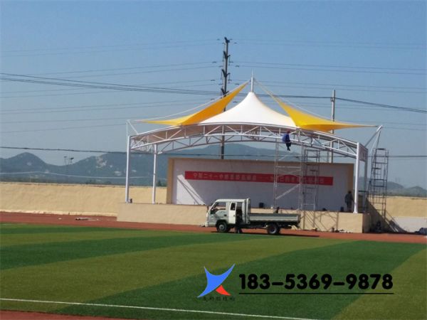 膜結(jié)構(gòu)看臺造型美觀大方,空間跨度大。更好的體現(xiàn)了膜結(jié)構(gòu)建筑空間跨度的優(yōu)勢,而且施工周期短。