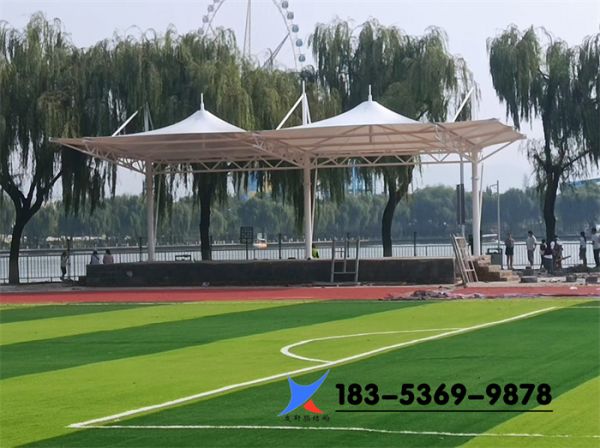 2、膜結構體育看臺建造施工工期短,膜結構加工制造都是在工廠內完成的,縮短了施答工時間,從而也為企業節省了施工成本。