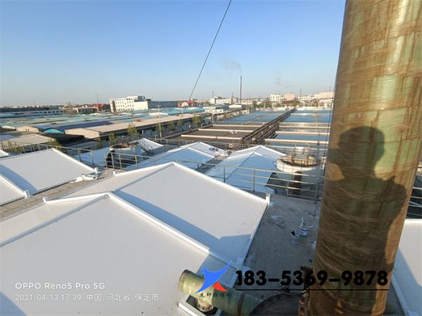 1、防腐效果好,且不用考慮維護(hù)問(wèn)題。反吊膜結(jié)構(gòu)的鋼材部分是在外面,只有膜材部分接觸污水池,如此便不會(huì)產(chǎn)生腐蝕問(wèn)題,更加不用擔(dān)心維護(hù)問(wèn)題。