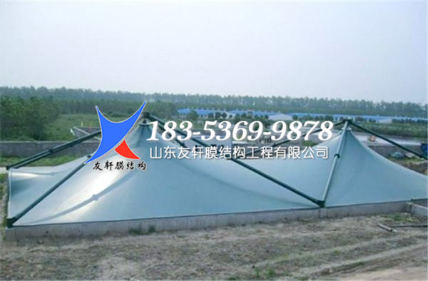 1、使用反吊膜對污水池進行加蓋,對污水池廢臭氣體的處理而言,無疑是一種環保有效的處理方法,將廢臭氣體密封在一個密閉的空間,利用凈化系統對池內的廢氣進行凈化后將達標的氣體排出池外,避免了廢氣對周圍環境的破壞。隨著污水池反吊膜結構的使用,許多大型建筑紛紛采用反吊膜結構的形式進行建筑,將膜結構的曲面設計特點完全展露出來,體現了膜結構建筑的特殊性和可塑造性。
