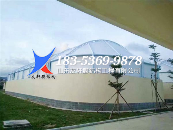 其次,由于膜材自身重量輕,抗拉強度很大,可以從根本上克服傳統(tǒng)膜結構在大跨度建筑上實現(xiàn)所遇到的困難,適合大跨度的池體使用;