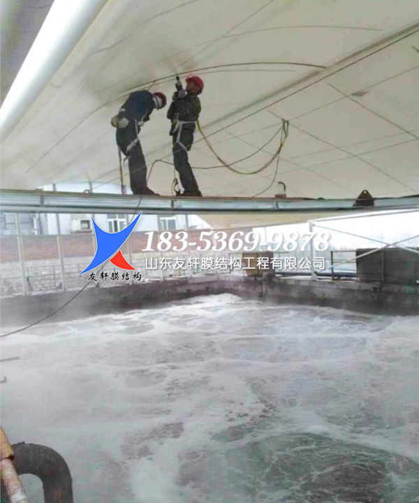 3、造價低。一般來說污水池的跨度一般較大,需要鋼材多。使用反吊膜建筑可有效減少鋼材使用率,從而降低成本。