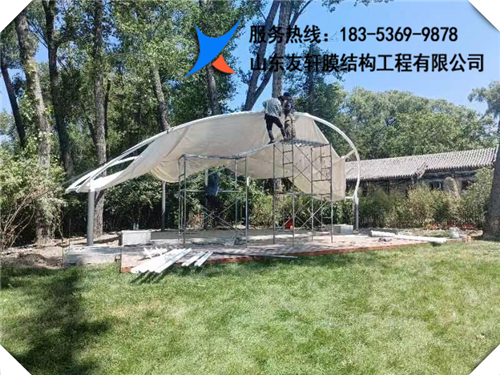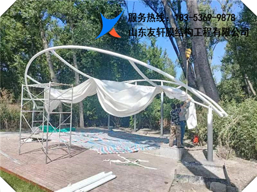 工地名稱:山西省太原市晉源區(qū)晉祠公園餐廳遮陽傘 膜材:國(guó)產(chǎn)PVDF白色膜材 平方數(shù):126平方