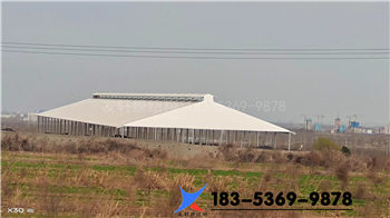 工地名稱:河北邢臺牛舍 膜材:國產 1100克 牛棚專用白色膜材 平方數:7500平方