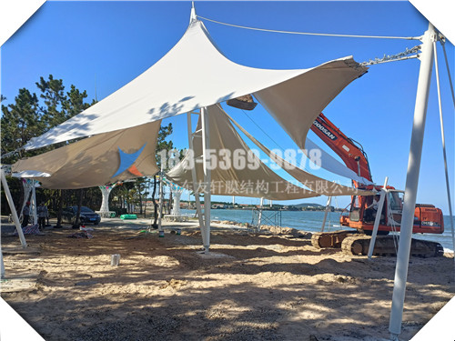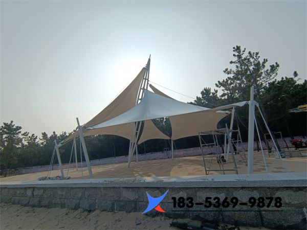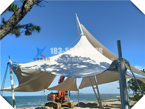 平方數(shù):3600平方 膜布:張拉膜 工地:威海榮成海洋藝術(shù)小鎮(zhèn)