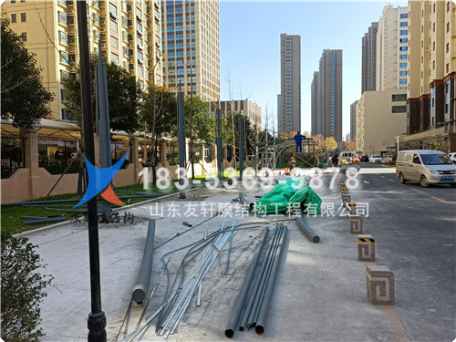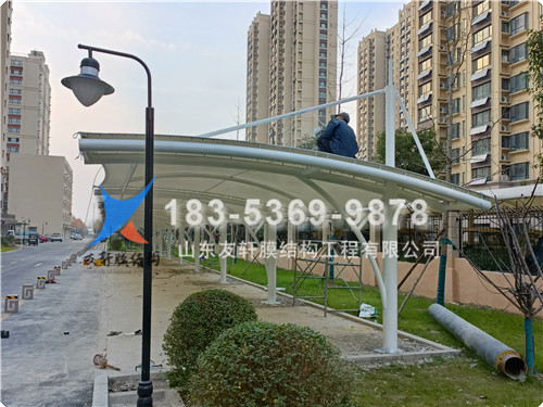 工地名稱:菏澤市牡丹區冠澤海棠灣汽車棚 膜材:國產PVDF膜材 平方數:360平方